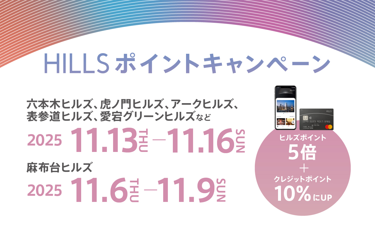 ヒルズポイントが5倍、ヒルズカードMastercard®でお支払いいただくとクレジットポイントが10%にUP!